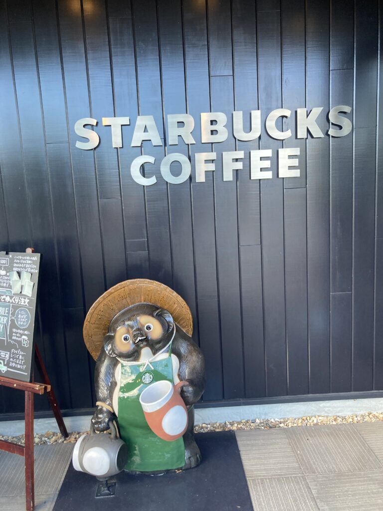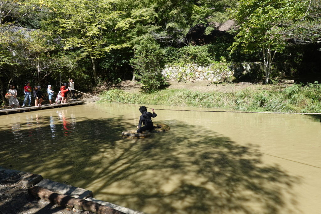 本日は甲賀の里忍術村に行ってきました。道中は高速を使わず下道を走りましたが、非常にスムーズでしかも今日は良い天気。良いドライブとなりました。まずは失礼ながら思ってたより人が多くて驚き。三連休最終日という事もあってか駐車場は他府県ナンバーがたくさん。手裏剣は別途料金500円がかかるけど大人も楽しめるアトラクション。的にあてるのもなかなか難しく2枚しかあてられませんでした。水蜘蛛もちょっとした水遊び気分で楽しめました。水が汚れていて深さが分からず焦りますがかなり浅いので安心です。途中、スタバタヌキにもよりご当地アイテムゲット!!タヌキが持っているマグカップ、可愛いです。